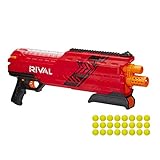 Experience intense head-to-head competition with the ultimate power of the Nerf Rival Atlas XVI-1200 blaster! Choose a blaster color and go into battle as the Red Team or the Blue Team. Deliver a double shot with the Atlas XVI-1200 blaster that fires 2 rounds at a time. The blaster has a spring-action cocking mechanism and fires at a velocity up to 80 fps (24 mps). It comes with 24 rounds and an easy-load, 12-round magazine. Experience the intensity of Nerf Rival with the Atlas XVI-1200 blaster! Nerf and all related properties are trademarks of Hasbro.