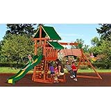 Key Benefits: Kids benefit from frequent physical activity and exercise You benefit from knowing the kids are secure in your own backyard This wooden swing set features 4 activities that will keep 7 kids busy at the same time Wooden swing set offers terrific value in outdoor play for the whole summer Ideal for smaller backyards Features & Specifications: Cedar, factory-stained wood from sustainable forests All wood included with this wooden swing set Covered play deck Dimensions: 18' 1"L x 7' 4"W x 9' 5"H What's Included: Covered play deck 8' Super Safe Speedy Slide 2 belt swings with kid-friendly chains Trapeze bar Picnic/activity table Rock wall Safe-T-Fuse Fastener System Swing Set Assembly: Includes detailed assembly manual Some pilot holes may need to be drilled on site Lumber is pre-drilled, pre-cut and pre-stained Lumber is stamped for ease of assembly All structural components and necessary hardware and fasteners are included 2 adults required for wood play set assembly Assembl
